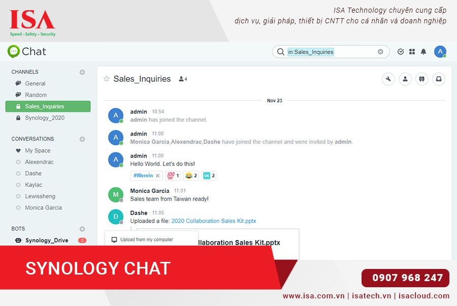 Một tính năng đáng chú ý của Synology Chat là khả năng tích hợp với các ứng dụng khác trên NAS Synology, như Synology Drive và Synology Office. Điều này giúp người dùng dễ dàng chia sẻ và hợp tác trên các tài liệu quan trọng, tăng tính hiệu quả trong quy trình làm việc.