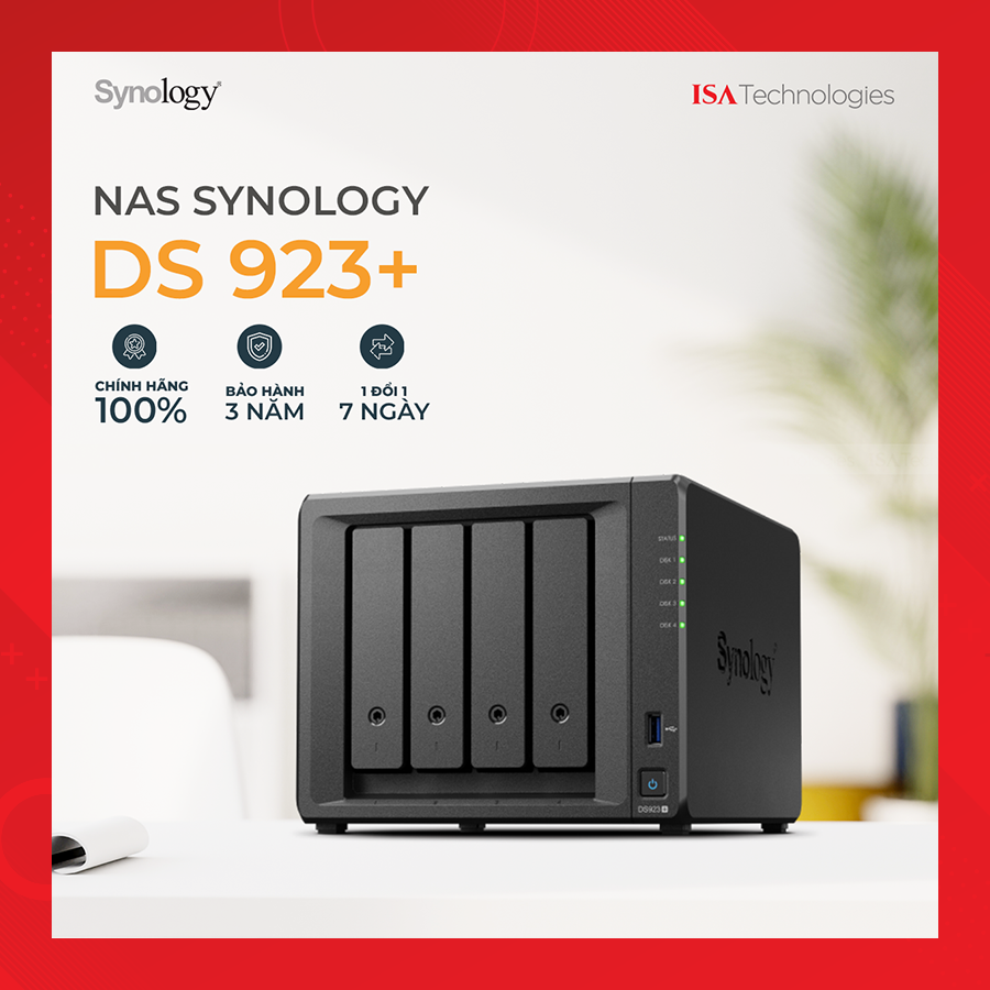 DS923+: Dòng NAS 4 khay ổ cứng và có khả năng mở rộng lên 9 ổ cứng với bộ mở rộng DX517, đặc biệt Ram có khả năng mở rộng lên tới 32GB, phù hợp với các doanh nghiệp SME có nhu cầu lưu trữ dữ liệu lớn.