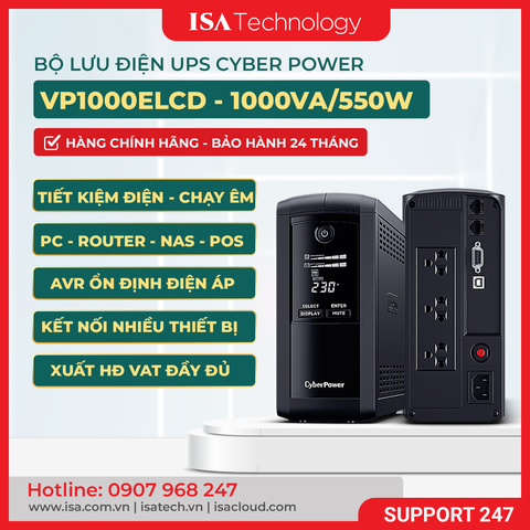 #CyberPower #VP1000ELCD #UPS #UninterruptiblePowerSupply #PowerBackup #GreenPowerUPS #AVR #NAS #BatteryBackup #boluudien #boluudienchonas #boluudienchopc #boluudienvanphong #thietbidien #luudien