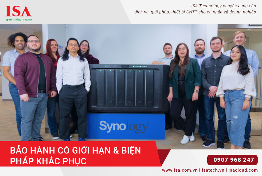Bảo hành có giới hạn là hình thức bảo hành mà nhà sản xuất chỉ chịu trách nhiệm đối với những lỗi sản phẩm phát sinh trong thời gian bảo hành. Điều này có nghĩa là Synology sẽ không chịu trách nhiệm đối với các vấn đề phát sinh do nguyên nhân bên ngoài, như tai nạn, sử dụng sai mục đích hoặc thiệt hại do thiên tai.