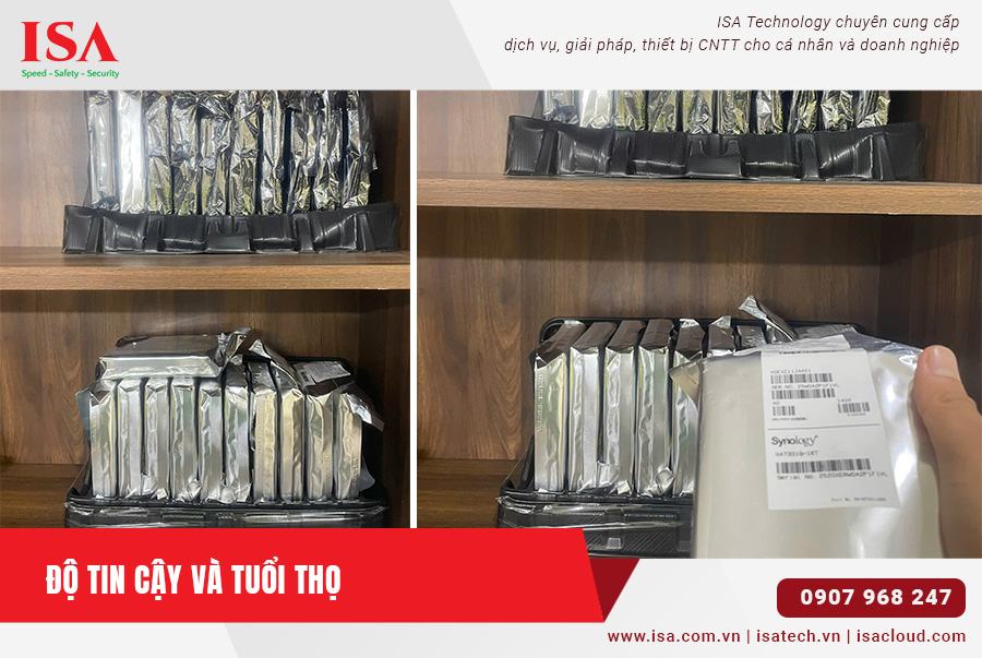 Việc lựa chọn ổ cứng chính hãng Synology không chỉ đảm bảo tương thích hoàn toàn với hệ điều hành DSM, mà còn đi kèm chính sách bảo hành lên đến 5 năm, hỗ trợ kỹ thuật trực tiếp từ hãng và cập nhật firmware định kỳ để tối ưu hiệu suất và độ bền.