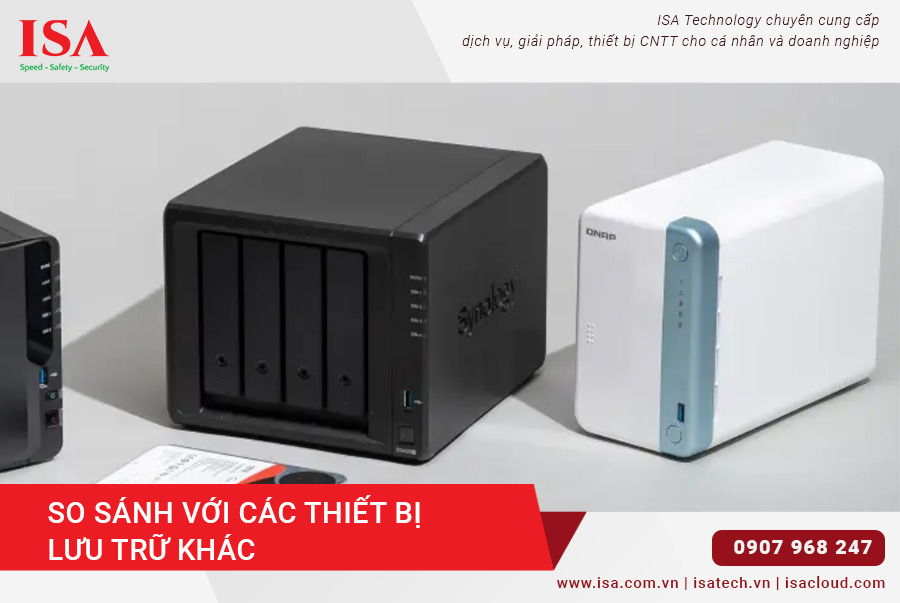 Khi so sánh giữa NAS và SAN (Storage Area Network), có thể thấy rằng NAS thích hợp hơn cho các văn phòng nhỏ và doanh nghiệp vừa. SAN thường yêu cầu hạ tầng phức tạp hơn và chi phí đầu tư cao hơn, trong khi NAS có khả năng mở rộng và đơn giản hơn trong việc quản lý.