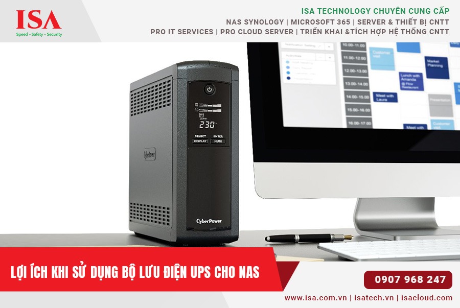 Hệ thống UPS cung cấp một nguồn năng lượng dự phòng đáng tin cậy, giúp hệ thống NAS tiếp tục hoạt động trong thời gian ngắn sau khi mất điện, đồng thời giúp các dữ liệu đang xử lý hoặc chưa lưu trữ được an toàn. Ngoài ra, các chức năng chống quá áp, chống sét, nhiễu điện còn bảo vệ phần cứng khỏi các tác nhân gây hại từ nguồn điện không ổn định.