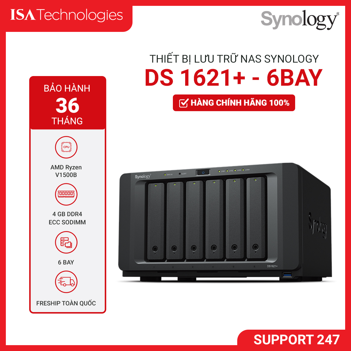 - Hiệu suất vượt trội: Được trang bị bộ vi xử lý mạnh mẽ và khả năng mở rộng RAM, DS1621+ có thể xử lý các tác vụ phức tạp và khối lượng dữ liệu lớn.