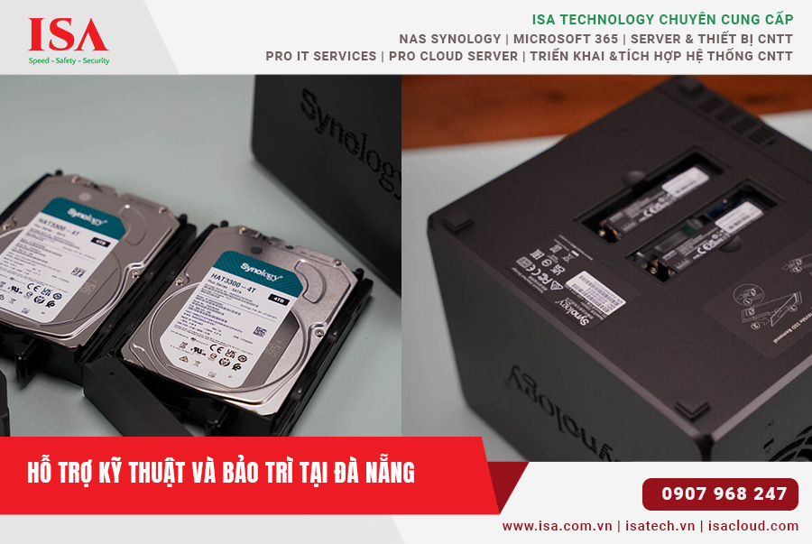ISA Technology là một trong những đơn vị uy tín hàng đầu tại Đà Nẵng chuyên cung cấp dịch vụ cài đặt, cấu hình và bảo trì hệ thống NAS Synology, đảm bảo đúng quy trình, nhanh chóng và chuyên nghiệp. Với đội ngũ kỹ thuật viên giàu kinh nghiệm, họ cam kết mang đến dịch vụ tốt nhất, hỗ trợ từ bước chuẩn bị đến vận hành, bảo trì dài hạn.