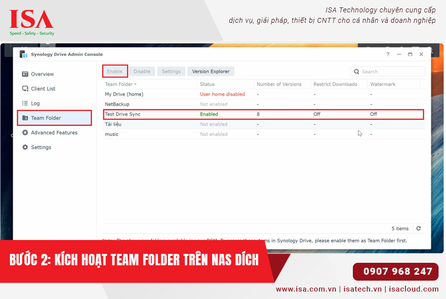 Bước 2: Kích Hoạt Team Folder Trên NAS Đích