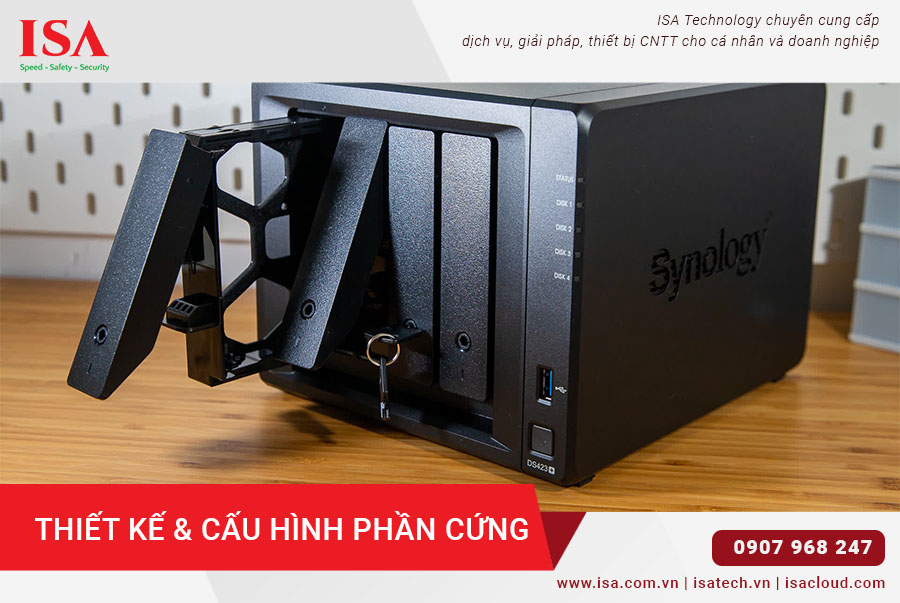 Thiết kế và cấu hình phần cứng đóng vai trò quan trọng trong việc quyết định hiệu suất và khả năng ứng dụng của một thiết bị NAS. Synology DS423+ không chỉ ấn tượng về mặt thông số kỹ thuật mà còn gây chú ý bởi thiết kế tinh tế, hướng đến tính thực dụng và hiệu quả. Hãy cùng đi sâu vào phân tích các khía cạnh thiết kế và cấu hình phần cứng của model này.
