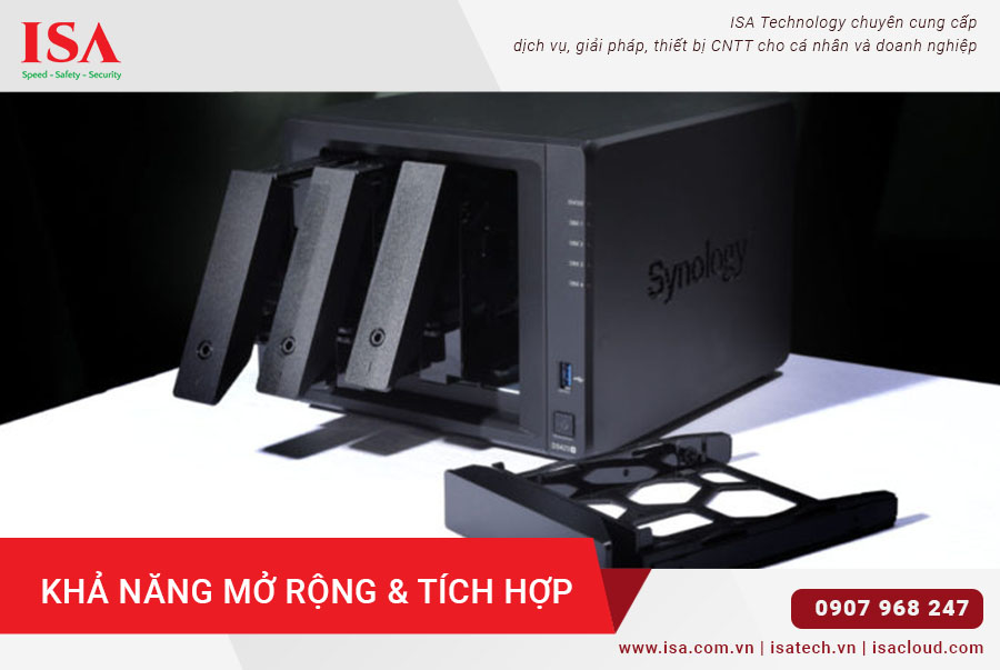 Tóm lại, khả năng mở rộng và tích hợp mạnh mẽ của Synology DS423+ giúp người dùng tận dụng tối đa khả năng của thiết bị, đồng thời đảm bảo rằng nó có thể phát triển cùng với nhu cầu ngày càng tăng trong tương lai.