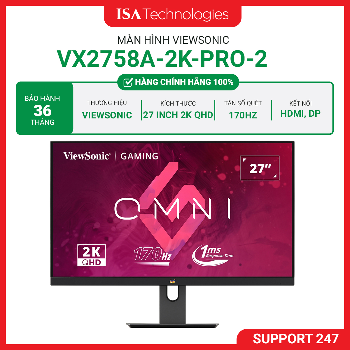 Trải nghiệm giải trí sống động với màn hình chơi game ViewSonic VX2758A-2K-PRO-2. Với tần số quét cao 170Hz và tốc độ phản hồi nhanh 1ms MPRT, sản phẩm này mang lại hiệu suất cao và hình ảnh mượt mà, làm hài lòng cả những game thủ khó tính nhất.