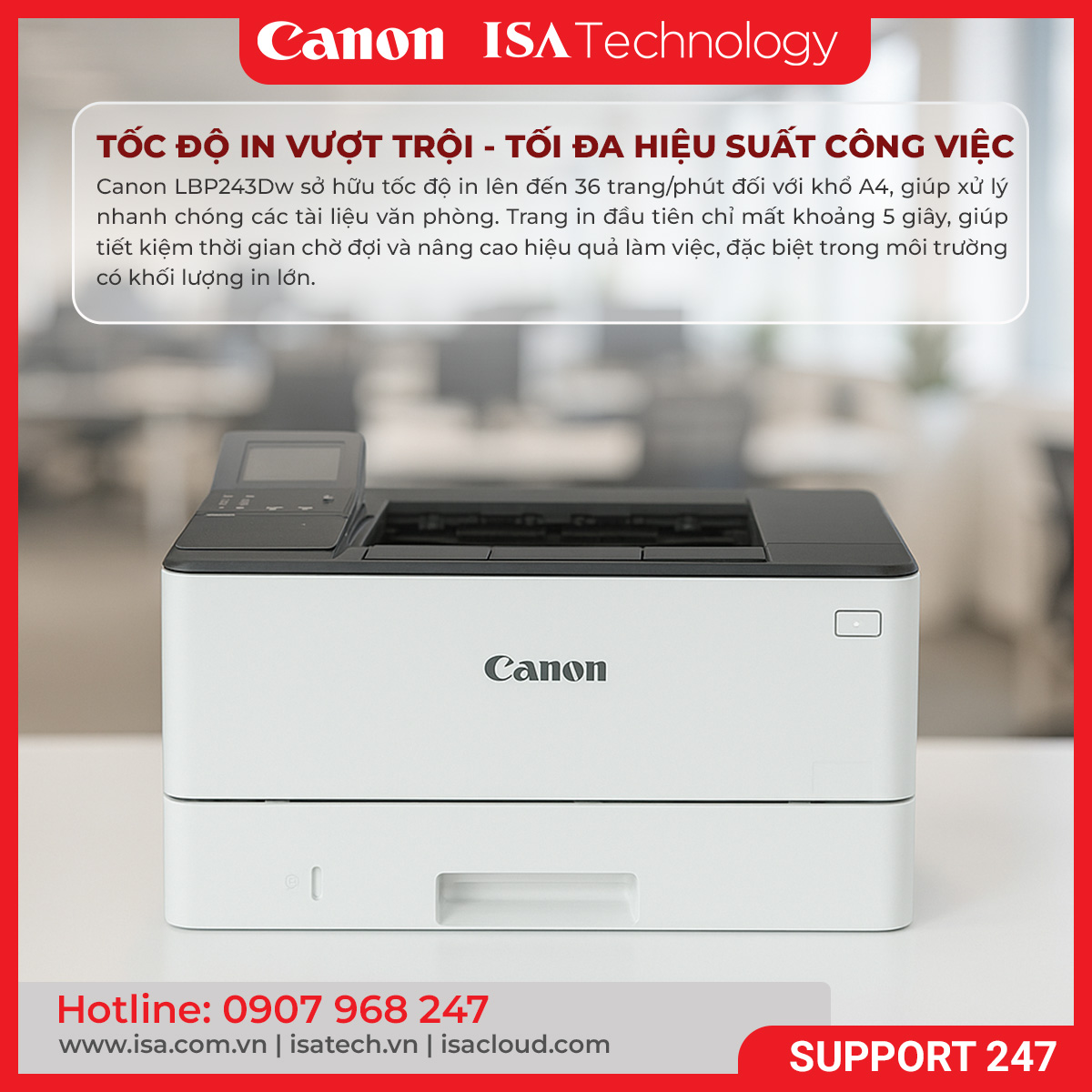 Trong môi trường làm việc chuyên nghiệp, một chiếc máy in hiệu quả là trợ thủ không thể thiếu. Canon LBP243Dw là mẫu máy in laser đơn sắc mới của Canon, được thiết kế dành riêng cho các doanh nghiệp vừa và nhỏ, mang đến hiệu suất vượt trội, khả năng kết nối đa dạng và chi phí vận hành hợp lý.