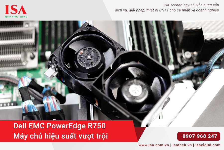 Dell EMC PowerEdge R750 được thiết kế với nhiều tính năng nổi bật nhằm tối ưu hóa hiệu suất và độ bền. Hệ thống làm mát bằng chất lỏng trực tiếp (DLC) giúp quản lý nhiệt độ hiệu quả cho các bộ xử lý công suất cao và tích hợp tính năng phát hiện rò rỉ nước, đảm bảo an toàn cho hệ thống. Quạt hot-swap 3 tầng với chế độ làm mát đa vector (MVC) 2.0 cung cấp khả năng làm mát tối ưu bằng cách đo nhiệt độ ở đầu vào và đầu ra, sau đó cung cấp dữ liệu trở lại phần mềm để người dùng kiểm soát làm mát tốt hơn.