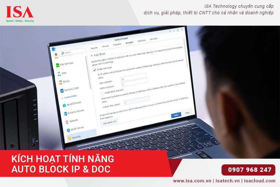 Để kích hoạt Auto Block, hãy truy cập vào phần cài đặt bảo mật của NAS Synology, tìm đến mục "Security" và bật tính năng này. Bạn cũng có thể tùy chỉnh các thiết lập như thời gian chặn và số lần đăng nhập thất bại trước khi kích hoạt chặn. Dưới đây là các bước chi tiết để kích hoạt tính năng Auto Block trên NAS Synology:
