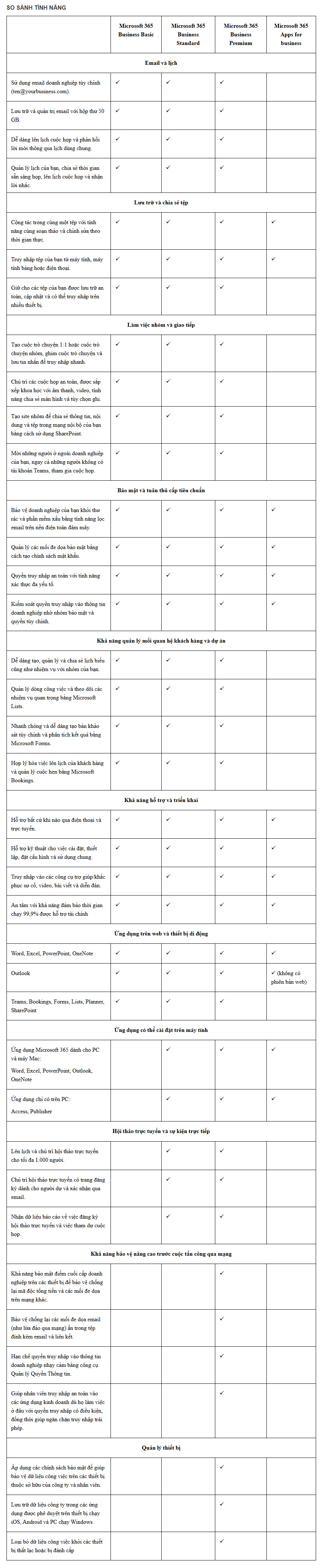 - Email doanh nghiệp: Tạo email tùy chỉnh (you@yourbusiness.com) với Outlook, bao gồm hộp thư 50 GB mỗi người dùng và gửi tệp đính kèm lên đến 150 MB.