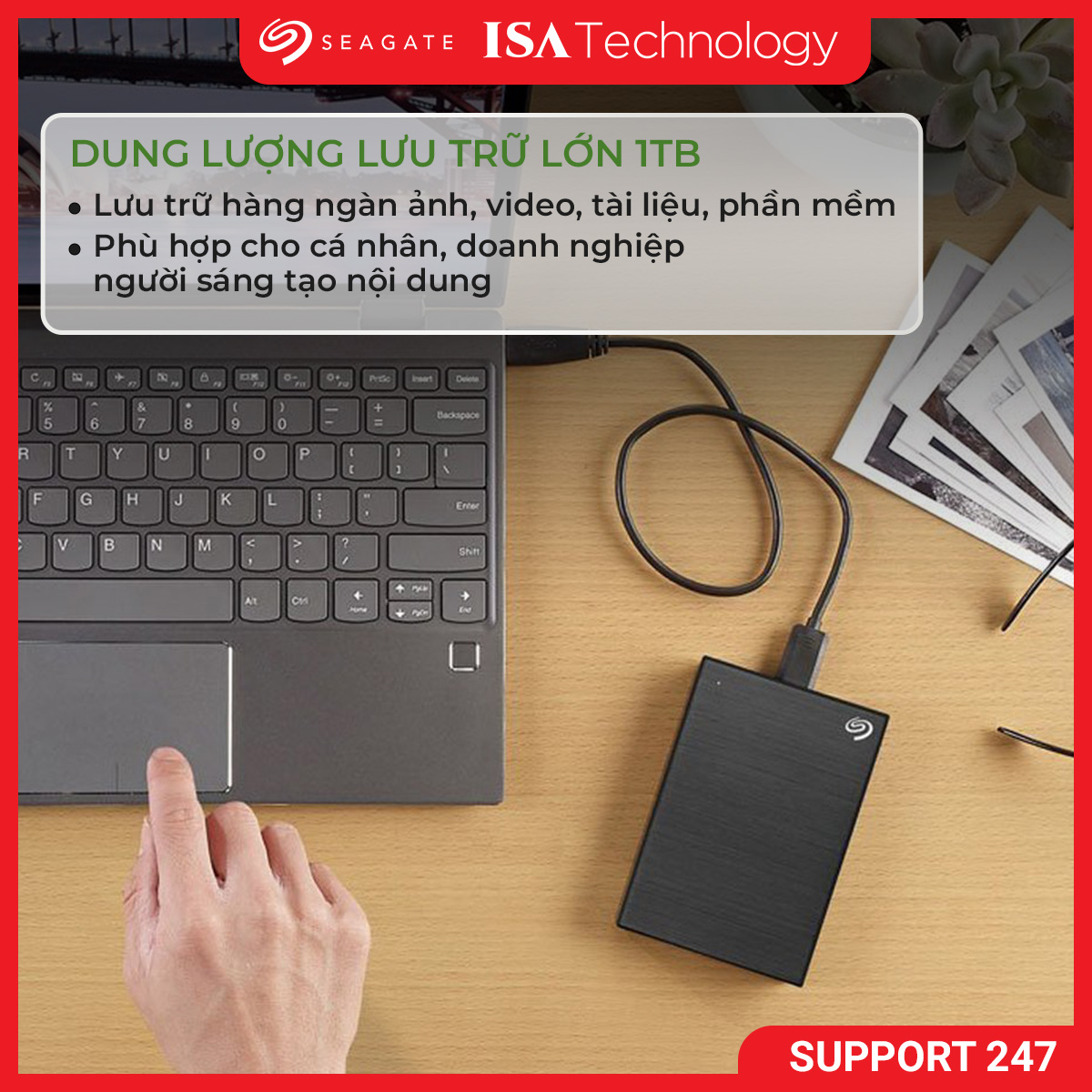 Với hai phiên bản dung lượng 1TB và 2TB, ổ cứng Seagate One Touch cho phép người dùng lưu trữ hàng ngàn ảnh, video, tài liệu, phần mềm và game mà không lo đầy bộ nhớ. Dù bạn cần lưu trữ dữ liệu học tập, công việc hay sáng tạo nội dung, sản phẩm đều đáp ứng tốt nhu cầu sử dụng lâu dài.