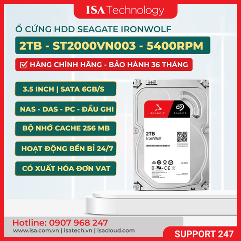 Ổ cứng Seagate Ironwolf 2TB ST2000VN003 mang lại sự kết hợp hoàn hảo giữa hiệu suất, độ bền và tính hoạt động, giúp trở thành giải pháp tốt nhất cho hệ thống NAS của bạn.