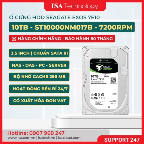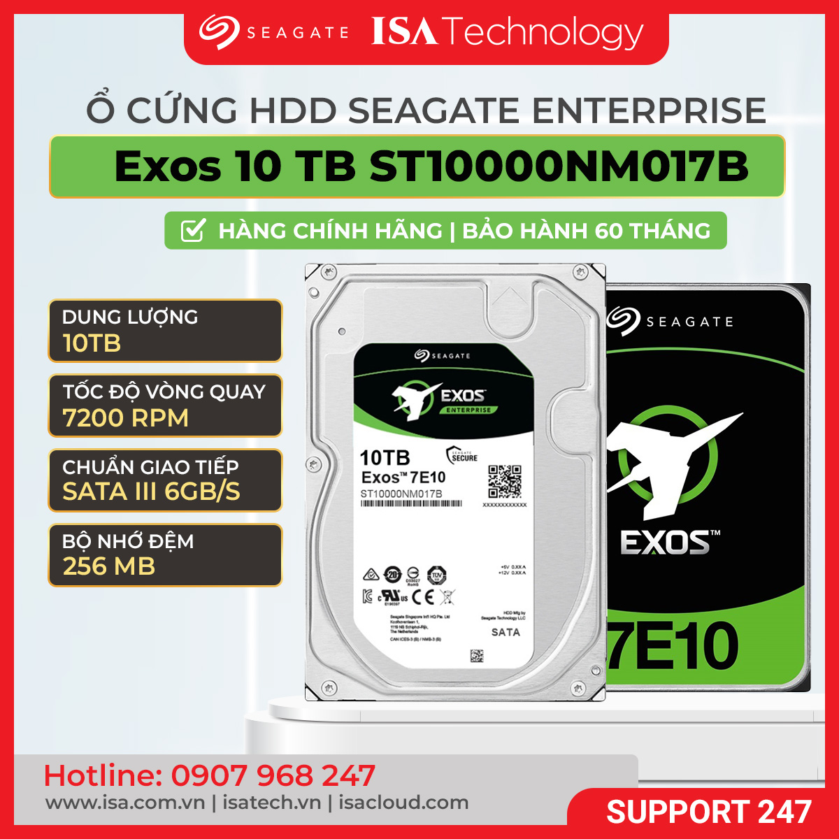 Seagate Exos 10TB 7E10 (ST10000NM017B) là dòng ổ cứng HDD cao cấp thuộc series Exos E, được thiết kế chuyên biệt cho môi trường doanh nghiệp, trung tâm dữ liệu và hệ thống NAS. Với hiệu năng mạnh mẽ, độ bền vượt trội và khả năng bảo mật tiên tiến, sản phẩm này là lựa chọn lý tưởng cho các tổ chức cần lưu trữ dữ liệu lớn, liên tục và an toàn.