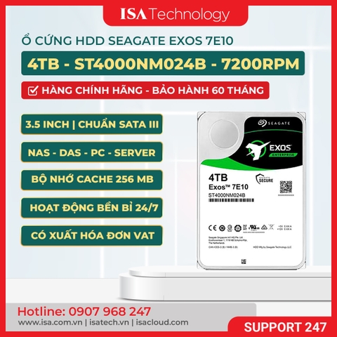Trong bối cảnh nhu cầu lưu trữ và xử lý dữ liệu ngày càng tăng cao, việc lựa chọn một ổ cứng có hiệu suất ổn định, độ bền cao và khả năng vận hành liên tục là yếu tố quan trọng đối với cả cá nhân lẫn doanh nghiệp. Ổ cứng Seagate Exos 4TB 7E10 ST4000NM000B 7.2K RPM là sản phẩm thuộc dòng ổ cứng doanh nghiệp của Seagate, được thiết kế chuyên biệt cho hệ thống server, NAS và trung tâm dữ liệu, đáp ứng tốt các yêu cầu lưu trữ cơ bản đến nâng cao.