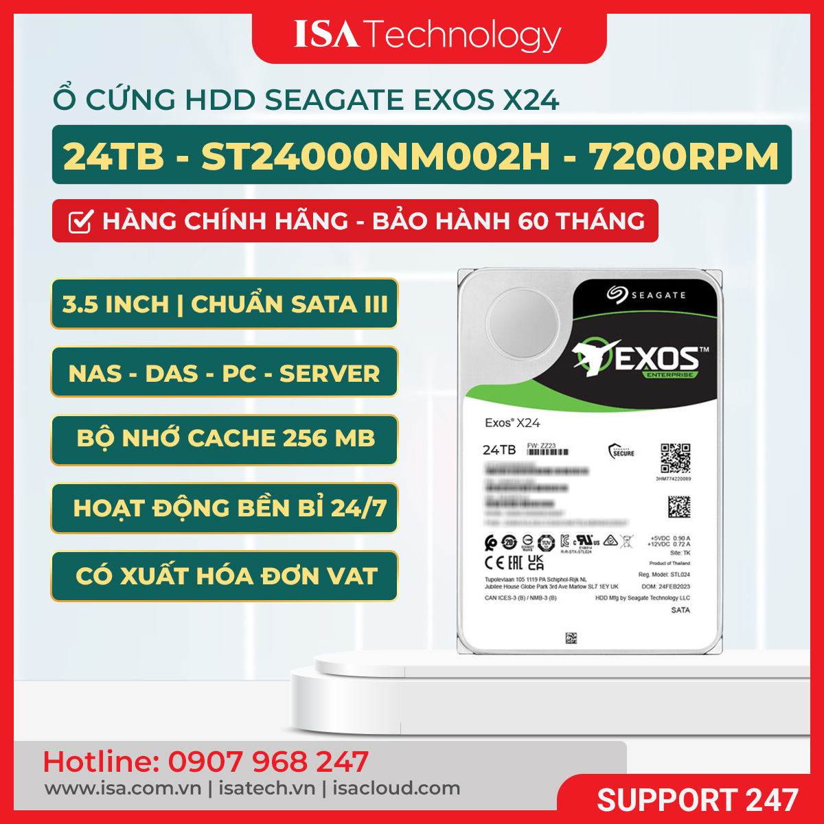 Mua Seagate Exos X24 24TB chính hãng tại ISA Technology
