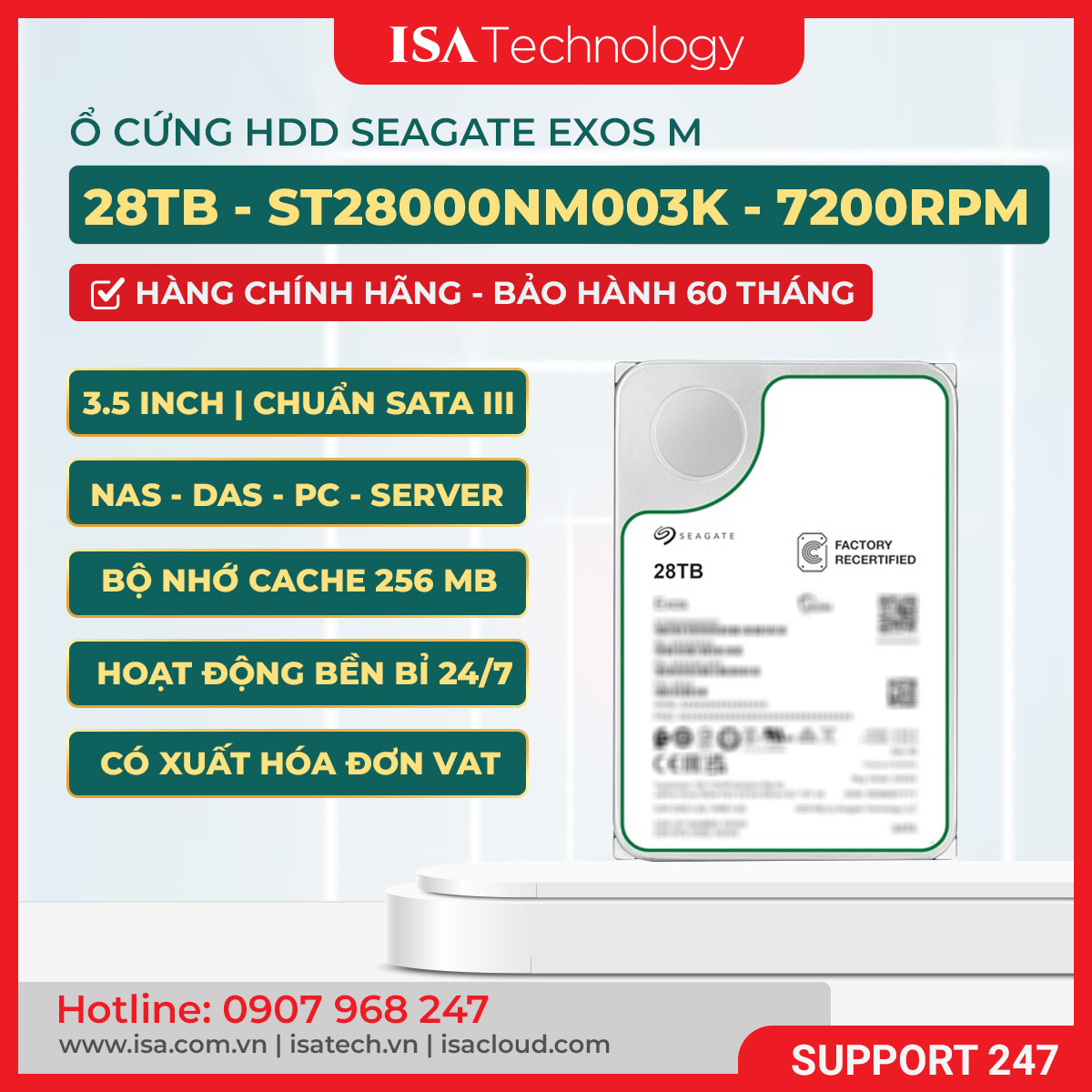 Trong đó, Seagate Exos M 28TB ST28000NM003K là model nổi bật, mang đến khả năng lưu trữ cực lớn trong chuẩn ổ cứng 3.5 inch, đáp ứng tốt các yêu cầu khắt khe về lưu trữ dữ liệu liên tục và lâu dài trong môi trường chuyên nghiệp.