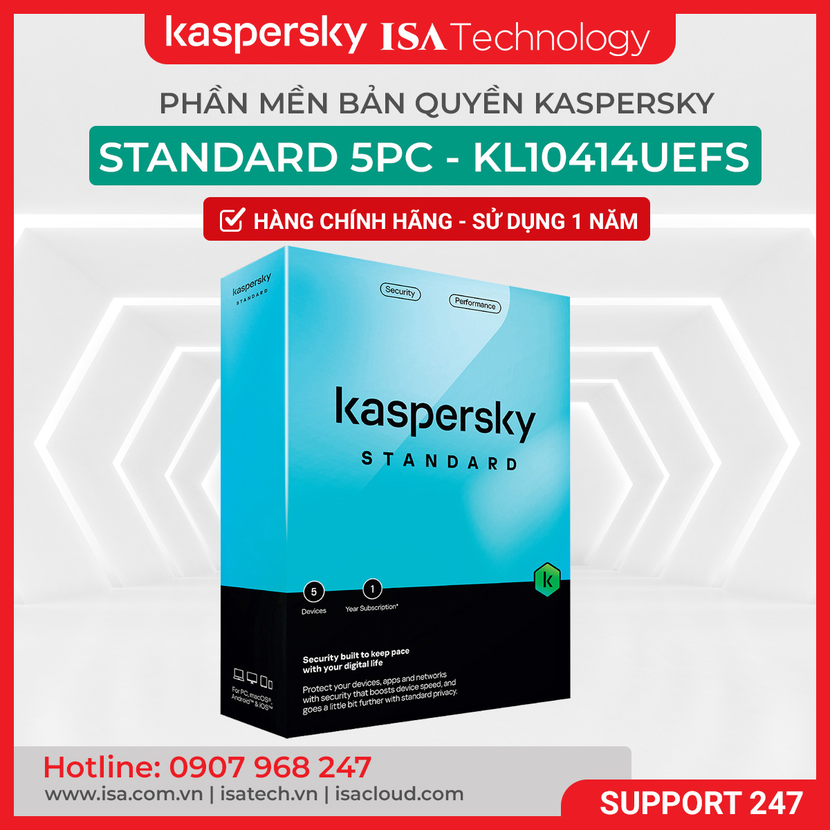 Nếu bạn đang tìm kiếm một phần mềm bảo mật mạnh mẽ, dễ sử dụng và đáng tin cậy cho nhiều thiết bị, thì Kaspersky Standard KL10414UEFS (5 PC) chính là lựa chọn hoàn hảo. Hãy đến với ISA Technology để sở hữu sản phẩm chính hãng, bảo vệ toàn diện cho hệ sinh thái số của bạn và tận hưởng cuộc sống số an toàn, hiệu quả.