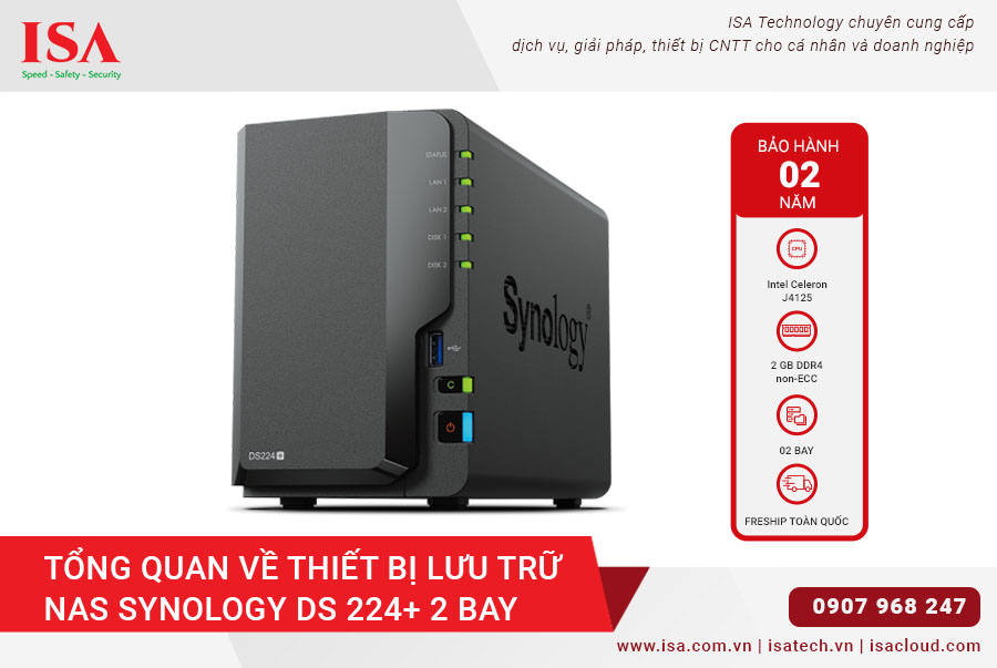 Thiết bị lưu trữ NAS Synology DS224+ 2 Bay không chỉ đơn thuần là một thiết bị để lưu trữ dữ liệu, mà còn là một giải pháp quản lý và bảo vệ tài nguyên số của bạn. Với khả năng mở rộng dung lượng lưu trữ lên đến 32TB và các tính năng bảo mật tích hợp, DS224+ mang đến cho người dùng sự linh hoạt và an toàn trong việc quản lý thông tin. Trong bài viết này, chúng ta sẽ cùng nhau khám phá chi tiết về thiết bị lưu trữ NAS Synology DS224+, từ thiết kế, cấu hình, đến các tính năng nổi bật mà nó mang lại cho cả cá nhân và doanh nghiệp.