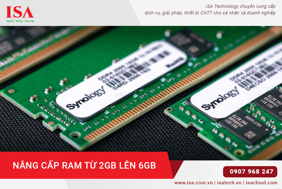 Một trong những điểm mạnh của Synology DS224+ là khả năng nâng cấp RAM từ 2GB lên đến 6GB. Điều này giúp cải thiện hiệu suất của thiết bị, đặc biệt trong các tác vụ yêu cầu xử lý dữ liệu nặng. Khi bạn mở nhiều ứng dụng cùng lúc hoặc xử lý các tệp tin lớn, việc nâng cấp RAM sẽ giúp thiết bị hoạt động mượt mà hơn.