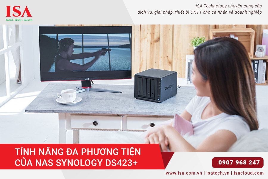 Với DS423+, người dùng còn có thể phát trực tuyến nội dung giải trí từ xa đến bất kỳ thiết bị nào được kết nối internet. Điều này cực kỳ thuận tiện cho những ai thường xuyên di chuyển hoặc muốn thưởng thức nội dung trong không gian khác nhau.