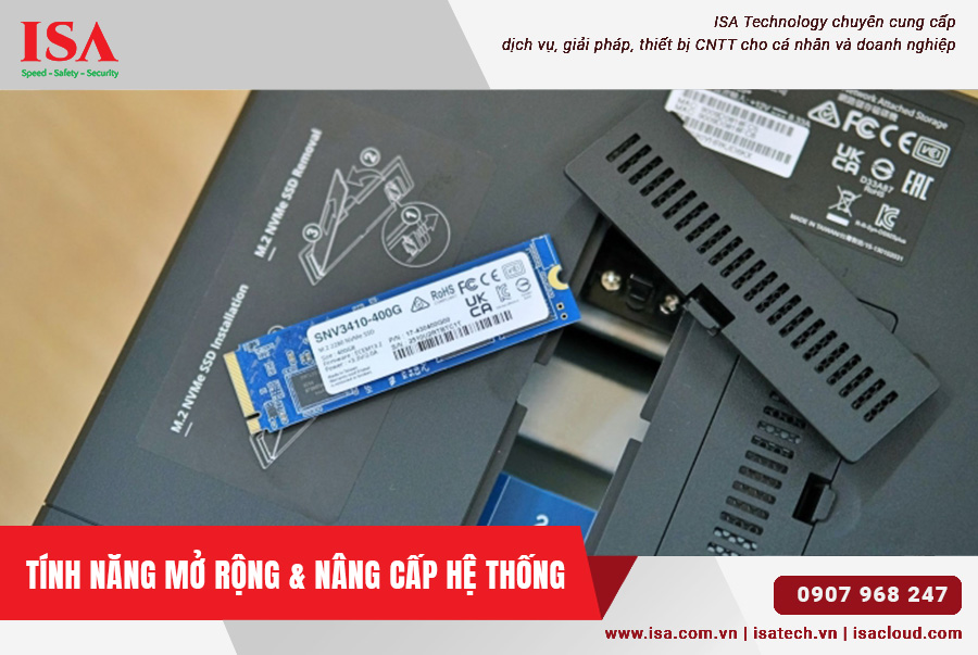 Bên cạnh mở rộng dung lượng, doanh nghiệp còn có thể nâng cấp các thành phần phần cứng như RAM, bộ xử lý hoặc card mạng để nâng cao hiệu năng hoạt động của NAS. Các dòng model Synology hỗ trợ nâng cấp phần cứng dễ dàng, phù hợp cho các môi trường yêu cầu cao.